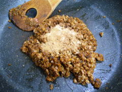 挽肉も炒め終えたら、火を止めて パウダースパイスを大さじ1加え、余熱で蒸らすように炒めます。 |