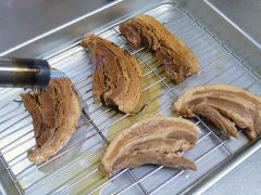 4:具材を調理する 炙り角煮の作り方。 まずは、通常どおり角煮を作ります。一晩寝かせて味を浸み込ませると良いです。 (※とろとろ角煮については、別途、レシピを作ろうと思います。) |