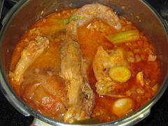スープが1100cc程度になったら、醤油(大さじ2)、ナンプラー(大さじ1)、粉末かつおだし(大さじ1)、 砂糖(小さじ1+1/2)、バジル(小さじ2)、パウダースパイス(大さじ1)を加え、軽く火を通します。 塩分量を味見をして、塩辛いようなら軽く水で希釈、薄いようなら、少し煮詰めてください。 これでスープは完成です。ここで冷蔵庫で一晩寝かせると美味しくなります。 なお、盛り付け前の再加熱する時に、お好みでカイエンペッパーとガラムマサラを加えてください。 (※スープが上手に取れていれば、これでかなり良い味になっていると思います。 どうしてもコクが足りない場合は、ココナッツミルクパウダーを大さじ1加えてください。) |