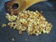 写真のようなキツネ色になるまで中火で10分程度炒めてください。 |